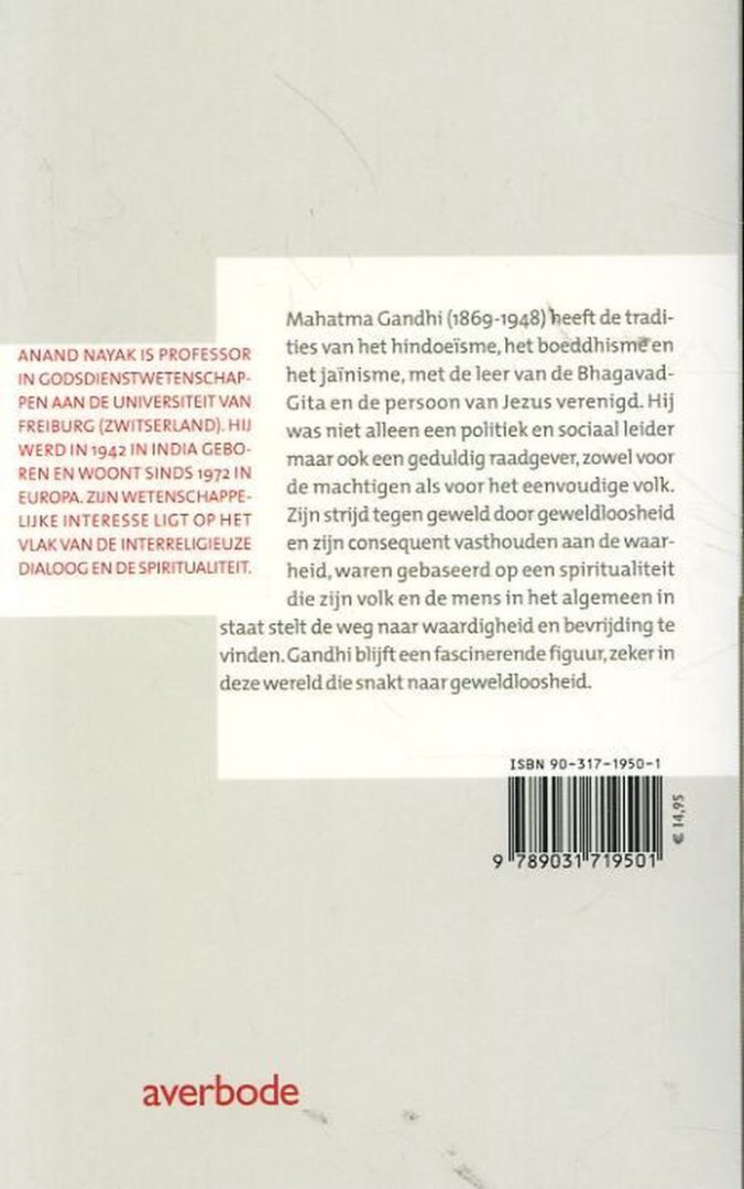 Mahatma Gandhi (1869-1948) heeft de tradities van het hindoeïsme, het boeddhisme en het jaïnisme, met de leer van de Bhagavad-gita en de persoon van Jezus verenigd. Hij was niet alleen een politiek en sociaal leider maar ook een geduldig raadgever, zowel voor de machtigen als voor het eenvoudige volk. Zijn strijd tegen geweld door geweldloosheid en zijn consequent vasthouden aan de waarheid, waren gebaseerd op een spiritualiteit die zijn volk en de mens in het algemeen in staat stelt de weg naar waardigheid en bevrijding te vinden. Gandhi blijft een fascinerende figuur, zeker in deze wereld die snakt naar geweldloosheid.