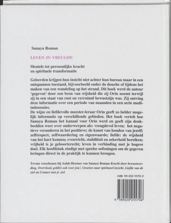 Geleerden krijgen hun inzicht niet achter hun bureau maar in een ontspannen toestand, bijvoorbeeld onder de douche of tijdens het maken van een wandeling op het strand. Dit boek werd de auteur 'gegeven' door een bron van wijsheid die zij Orin noemt terwijl zij in een staat van rust en verruimd bewustzijn was. Zij ontving deze informatie over een periode van maanden in een serie meditatiesessies. De wijze en liefdevolle meester-leraar Orin geeft zo helder mogelijk informatie op verschillende gebieden. Het boek vertelt hoe Sanaya Roman het kanaal voor Orin werd en geeft zijn denkbeelden weer over onderwerpen als vreugdevol leven; het negatieve veranderen in het positieve; de kunst van houden van jezelf, zelfrespect, zelfwaardering en eigenwaarde; liefde de wijsheid van het hart kennen; evenwicht, stabiliteit en zekerheid bereiken; vrijheid is je geboorterecht; leven. in verbinding met je hogere doel. Elk hoofdstuk eindigt met speelse oefeningen om de gegeven leringen direct in de praktijk te kunnen brengen.